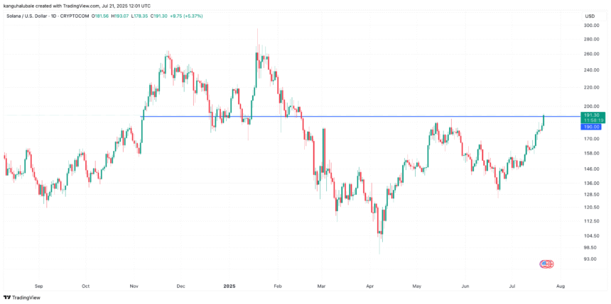 Solana’s (SOL) price rallied 34% over the last 30 days, reaching a five-month high of $193 on Monday.