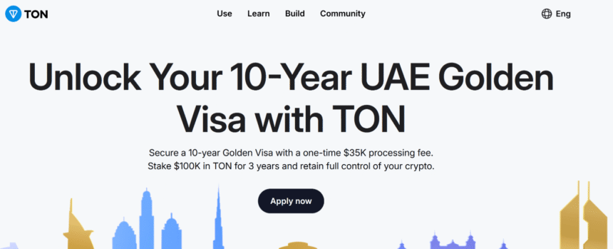 The TON Foundation announced a program on Saturday, a Toncoin (TON) staking opportunity that claimed to offer golden visas for holders to enter the UAE.