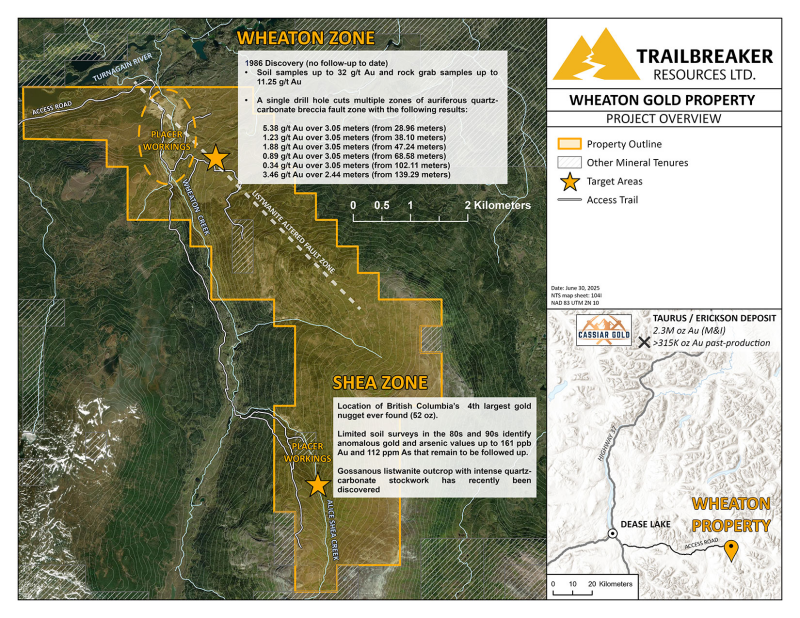 Trailbreaker Acquires the Wheaton Gold Property, an Orogenic Gold Prospect in BC’s Underexplored Turnagain Placer District