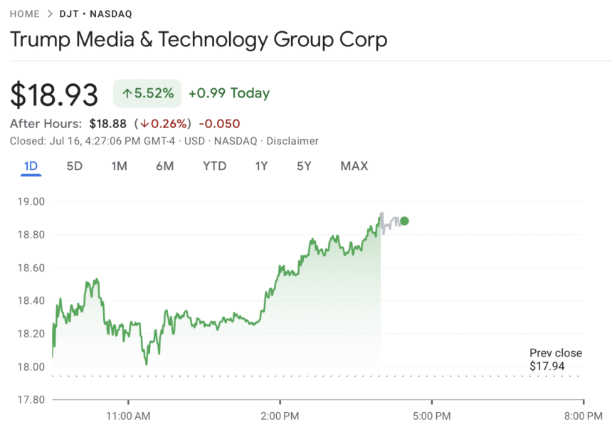 TMTG’s shares closed the day 5.5% higher on Wednesday, a rally that outstripped the Nasdaq, index on which the company is listed. Trump Media posted a net loss of $31.7 million for Q1 2025, with revenue of $8.8 million.