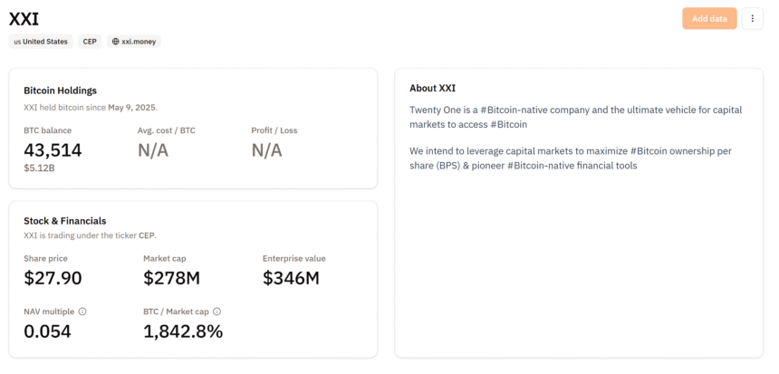 Cointelegraph reached out to Twenty One Capital for comment but had not received a response by publication.