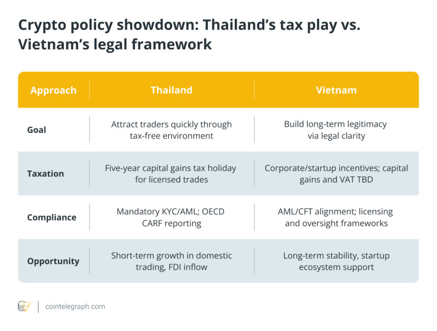 While Thailand is rolling out a five‑year tax holiday to attract crypto capital, Vietnam is playing the long game with foundational regulation and targeted incentives.