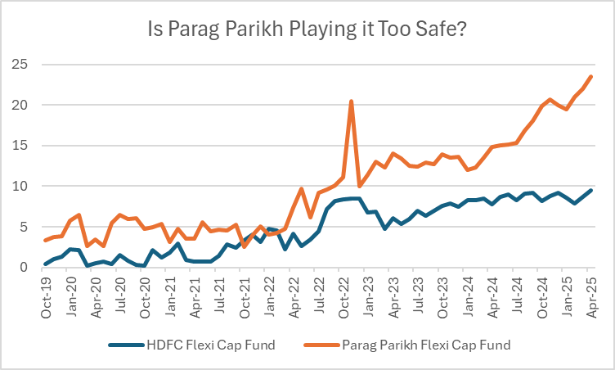 A fund’s cash position often reveals how its manager views the market. Let’s look at how these two Flexi Cap funds have managed their cash over time.